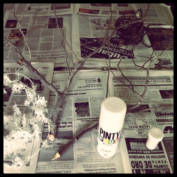 | 1. Lo primero que hay que hacer es pintar la rama con el spray |